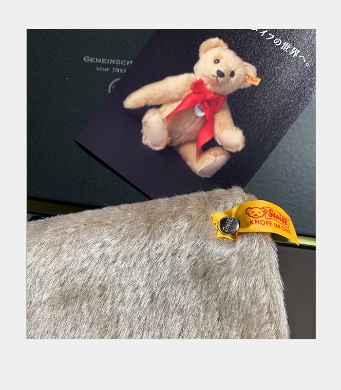 シュタイフの証の黄色いタグ、ボタン・イン・イヤーもあります。