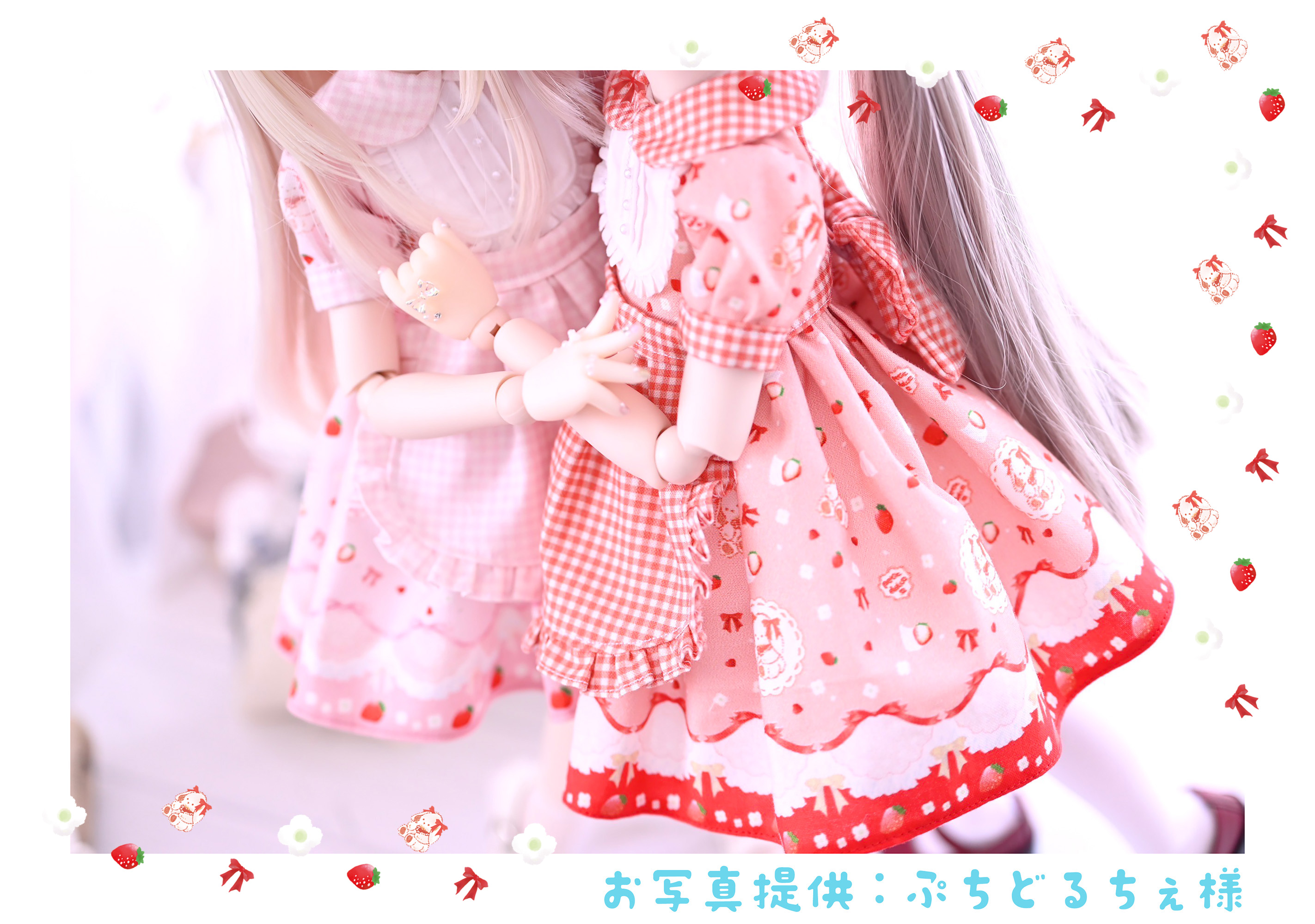 以前ブログにも書いた、1/12とTinyfoxサイズでお仕立ていただいたぷちどるちぇ様オリジナルデザイン生地を使用したお洋服。